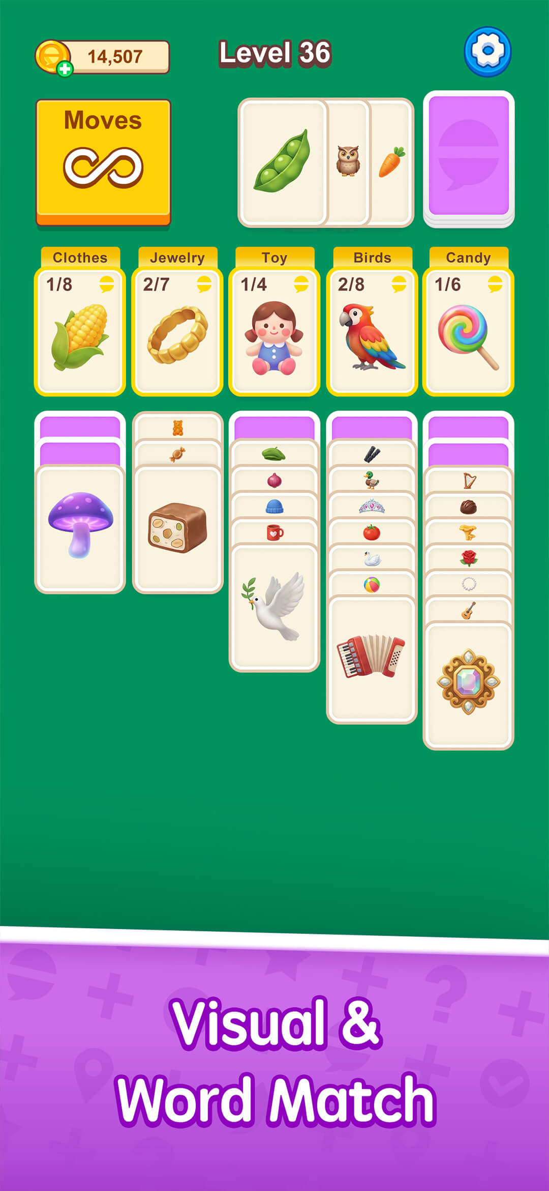 A creative fusion of classic Solitaire and Word Puzzles! In this adventure, dive into a massive vocabulary library where you clear the board by chaining words together.
